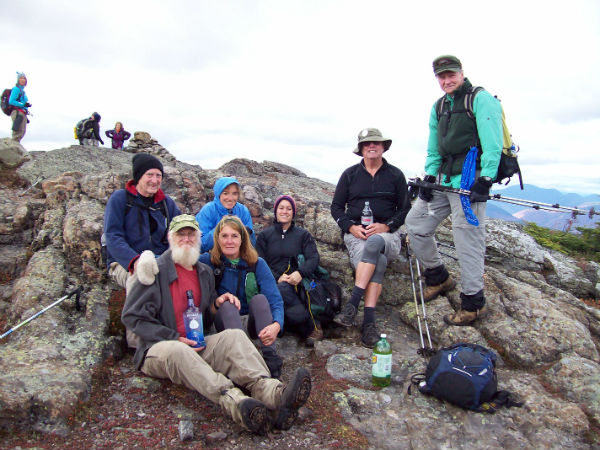 Charlie and Nancy on the summit of Mount Pierce with 9 other Grid finishers.