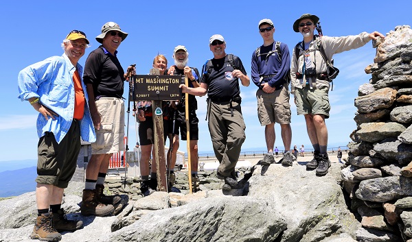 Ed “OldMan” Smith’s Grid finish on Mt Washington 06/14/15 joined by other Grid finishers (left to right) Jeb Bradley, Hiker Ed Hawkins, Nancy and Charlie Foote, Ed Smith, Jeremy Clark, Gary Tomkins. Other Grid finishers on the summit to celebrate Ed’s finish were Guy Jubinville, John Gutowski and June Rogier.
