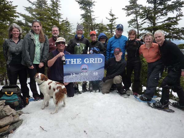 John Gutowski and June Rogier completed The Grid on Mount Tecumseh on April 24, 2011. This was the first time that two people completed The Grid on the same day. Not only that, but they completed all 576 peaks together! They were joined by about a dozen of their friends including Grid Finishers Ed Hawkins, Cath Goodwin, and Jeremy Clark.