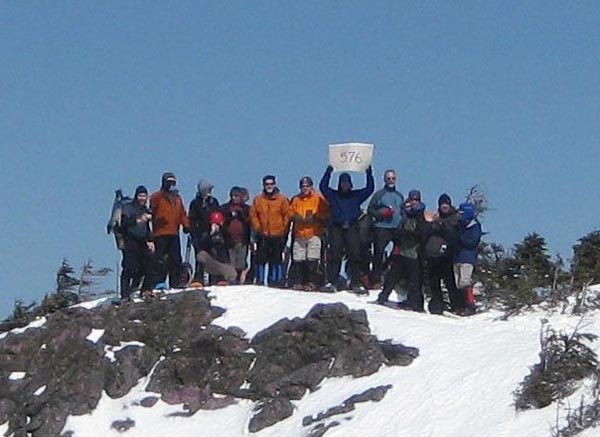 Mary Ellen, known by many of her hiking friends as MEB, completed The Grid on March 27, 2010 on Mount Flume. She ascended the mountain via the Osseo Trail accompanied by her friends. As she reached the summit she was greeted by two groups that had come up from the Liberty Spring Trail to congratulate her.
